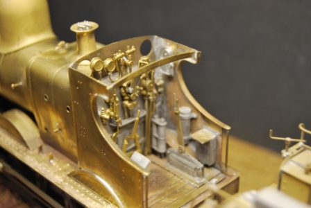 De voetplaat is niet ruim bij deze locomotief. Alle bedieningselementen en de controle meters hebben hun plaats gevonden en er is ook nog ruimte voor de machinist en de stoker.
